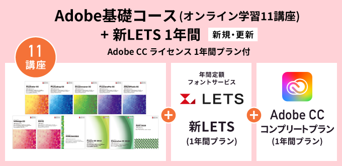 人気のAdobeCC1年間とフォントワークス新「LETS」1年間のセット商品です。
