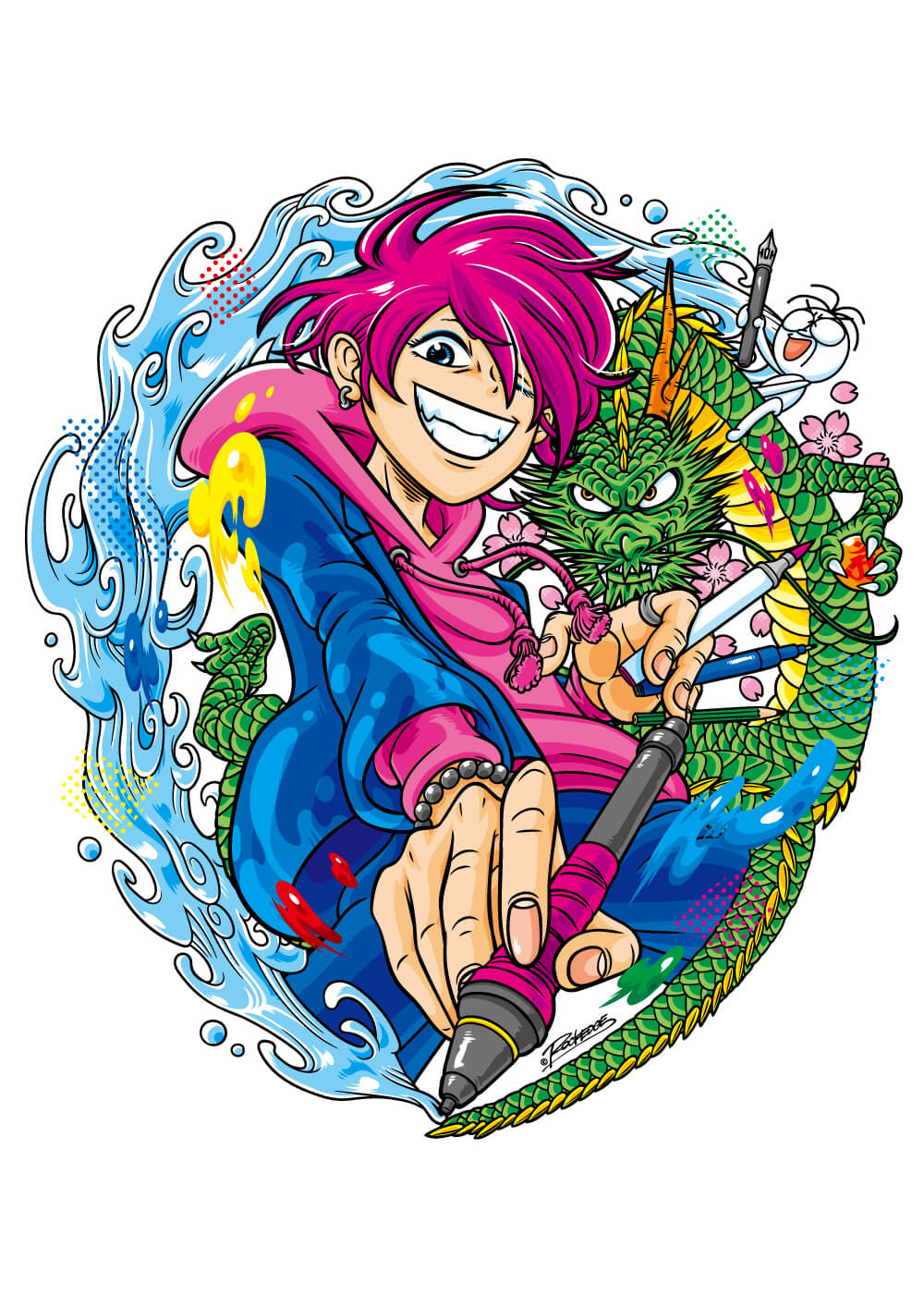 現在は、企業や商品・媒体の漫画制作、イラストを含むデザイン制作から、1点物のイラストまで様々な媒体のイラストをROCKテイストで描くイラストレーターとして活動。
