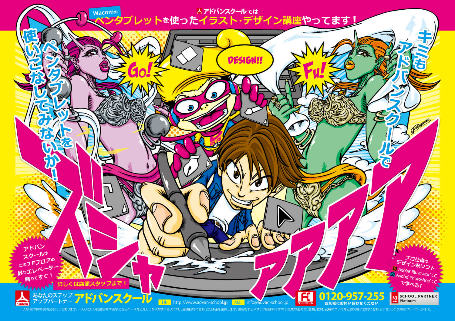 イラストレーター活動の傍ら、高校、大学や専門学校、ビジネススクールで、漫画、イラスト、デザイン、Illustrator、Photoshopの非常勤講師もやらせていただいてます。